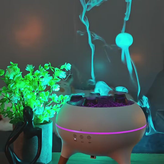 Mist rises in jellyfish shapes that pulse to whatever's playing. Customers buy one, love it so much they immediately order another. It's addictive because you just stop and stare.